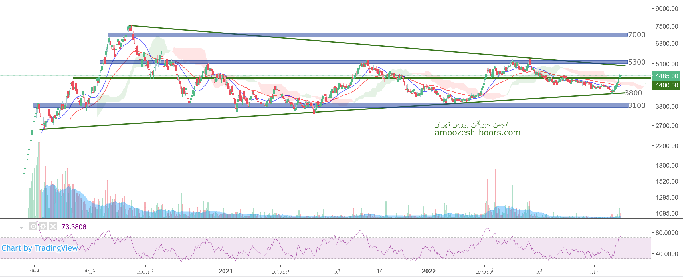 قیمت سهم ومهان در حال پشت سر گذاشتن مقاومت 4400 ریال میباشد، در صورتی که موفق به عبور از این مقاومت شود، مقاومت بعدی 7000 ریال در نظر گرفته خواهد شد، همچنین در صورت ورود سهم به فاز اصلاحی، اولین حمایت سهم ومهان 3800 ریال میباشد.