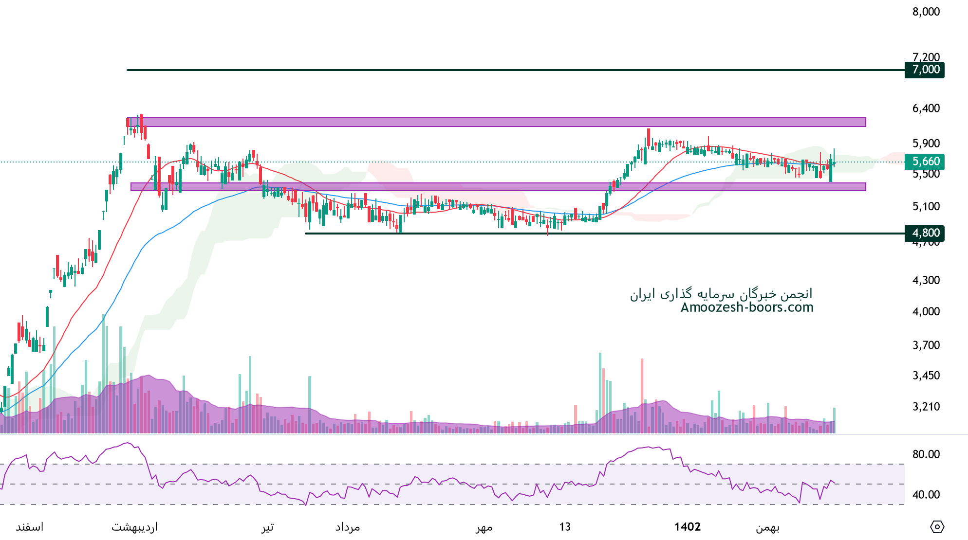 با توجه به سقف و کف ساخته شده در نمودار ومهان انتظار نوسانات کوتاه مدت در این سطح میرود، و با توجه به جو بازار انتظار حرکات شارپی و بلند نمیرود.