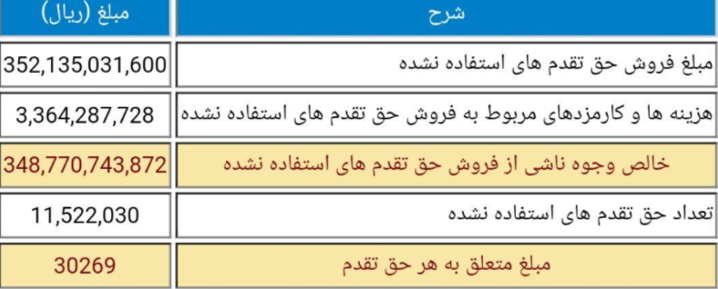 همچنین نتایج حق تقدم استفاده نشده وپخش به شرح زیر می باشد .