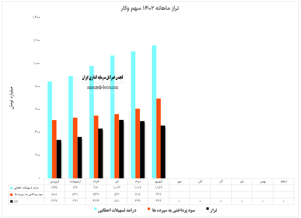 نماد وکار در گزارش عملکرد مهر ماه توقف در روند صعودی درآمد زایی داشته و 1036 میلیارد تومان را شناسایی نموده است که در مقایسه با درآمد ماه گذشته کاهش 11 درصدی را تجربه نموده است.
