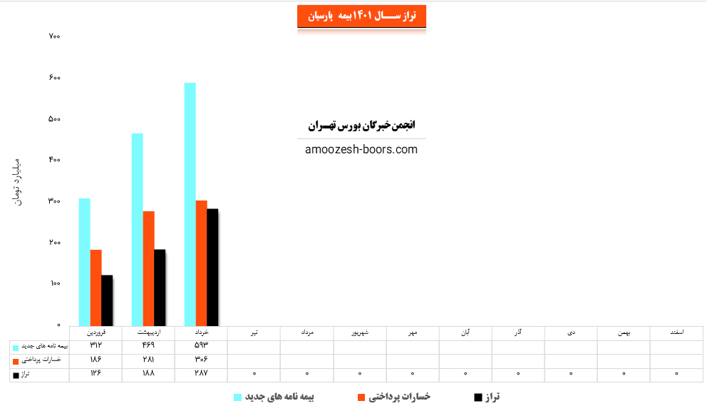 نماد پارسیان (شرکت بیمه پارسیان) در خرداد ماه سال 1401 حدود مبلغ 593 میلیارد تومان بیمه نامه جدید صادر کرده که این میزان در مقایسه با ماه گذشته 26% افزایش پیدا کرده است.