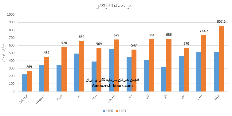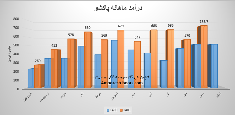 شرکت تولیدی و شیمیایی پاکشو با نماد پاکشو با ثبت رکورد جدید در گزارشات ماهانه به درآمد 733.7 میلیارد تومانی دست یافته است، 8% از درآمد این ماه از طریق صادرات و مابقی از طریق فروش داخلی نامین شده، بیشترین وزن سبد فروش نماد پاکشو را شوینده البسه تشکیل داده است که میزان تولید این محصول نسبت به ماه قبل افزایش 5%، میزان فروش افزایش 27% و نرخ فروش آن افزایش 1% را داشته است، درآمد بهمن ماه سهم پاکشو نسبت به ماه گذشته و متوسط ماهانه افزایش 29 درصدی و نسبت به مدت مشابه افزایش 43 درصدی را نشان میدهد، مجموع درآمد 11 ماهه سهم پاکشو رشد 42 درصدی نسبت به مدت مشابه داشته است.