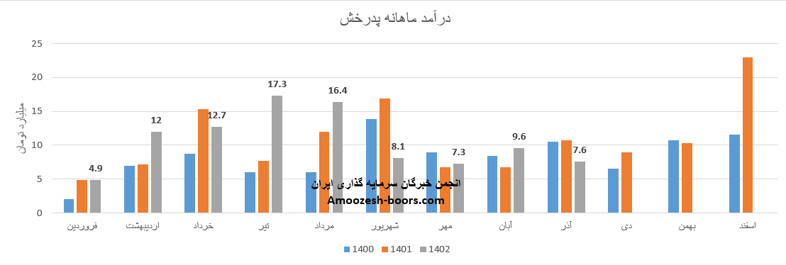 فروش آذر ماه سال 1402 سهم پدرخش 7.6 میلیارد تومان گزارش شده است که 61% از این درآمد از طریق فروش داخلی و مابقی از طریق فروش صادراتی به دست آمده است، تغییرات درآمدی پدرخش به شرح زیر میباشد: