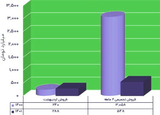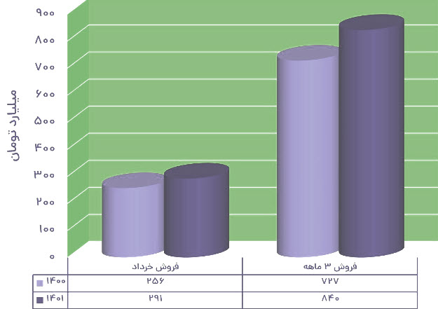 شرکت به پرداخت ملت طی عملکردخرداد ماه 1401 معادل 2,914,670 میلیون ریال از محصولات خود را به فروش رسانده است که نسبت به ماه قبل 1% افزایش و نسبت به میانگین ماه های قبل 6% افزایش داشته است.