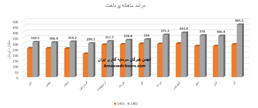 فروش آذر ماه سال 1402 سهم پرداخت 465.5 میلیارد تومان گزارش شده است، تغییرات درآمدی پرداخت به شرح زیر میباشد: