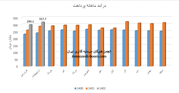 نماد پرداخت طی عملکرد 1 ماهه تیر ماه سال 1402 مبلغ 334 میلیارد تومان را شناسایی نموده که رشد 2 درصدی نسبت به ماه قبل، رشد 6 درصدی نسبت به متوسط ماهانه و رشد 13 درصدی نسبت به مدت مشابه داشته است، مجموع عملکرد 4 ماهه سهم پرداخت رشد 13 درصدی نسبت به مدت مشابه داشته است و طی این مدت 36% از کل درآمد سال گذشته پوشش داده شده است، خدمات شارژ سهم 50 درصدی از فروش ماهانه را به خود اختصاص داده که نسبت به ماه گذشته افت 8 درصدی را تجربه نموده است.
