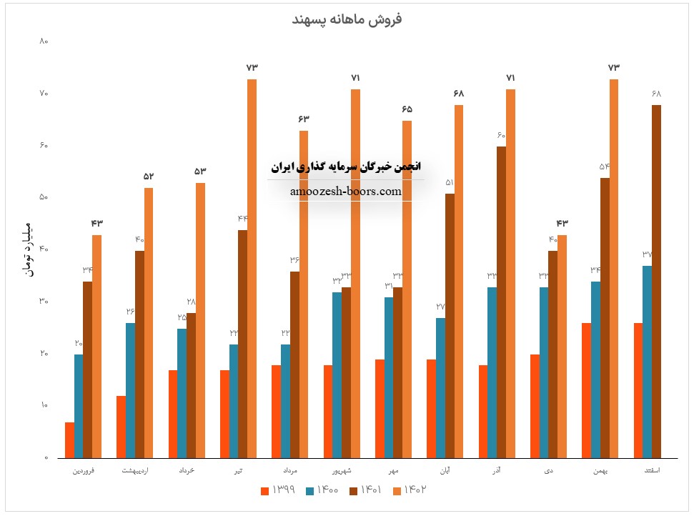 نماد پسهند در اسفند ماه از طریق فروش داخلی به فروش 66.6 میلیارد تومانی دست یافت.