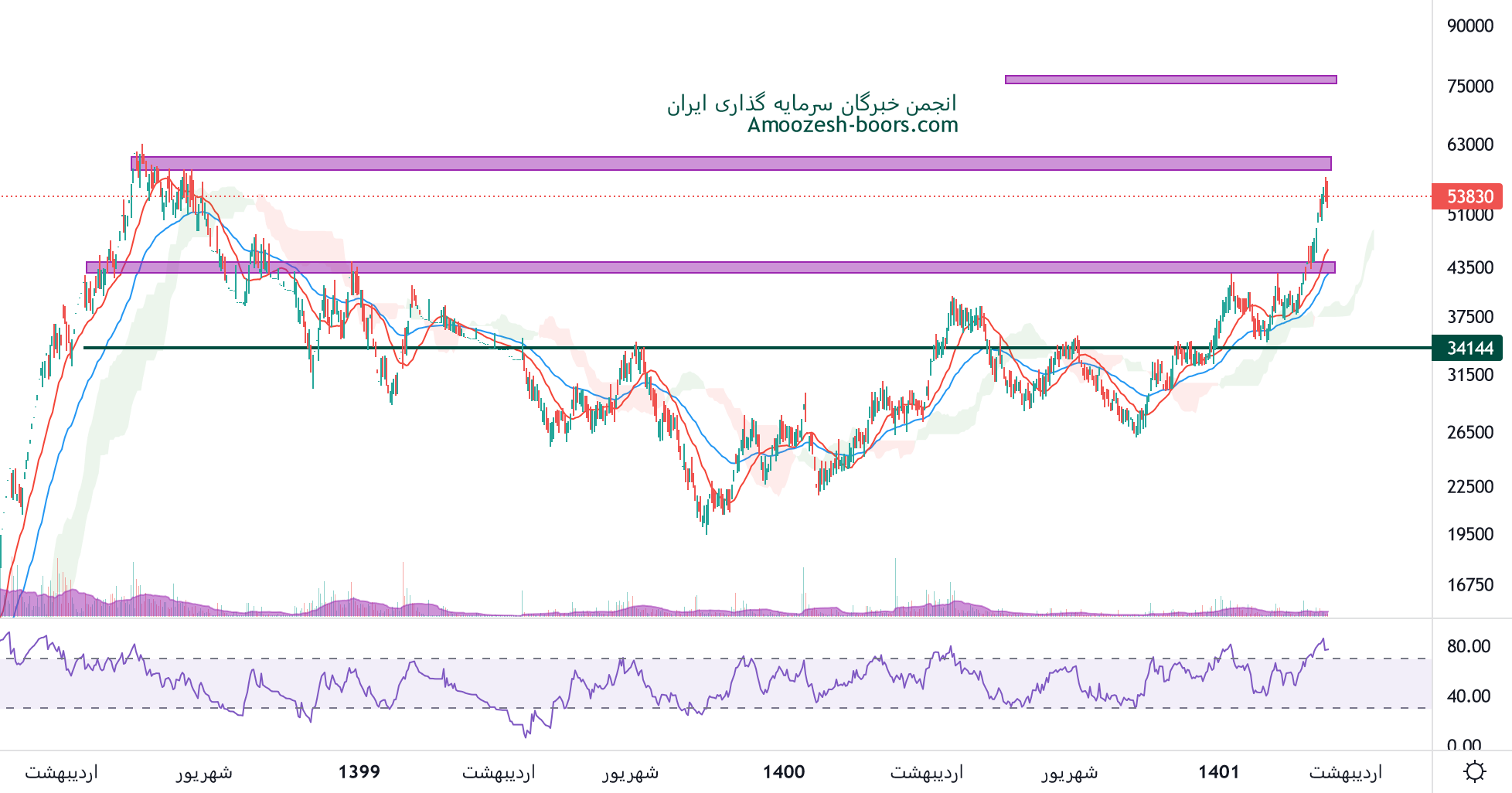 نماد پسهند به محدوده مقاومتی 60000 ریال رسیده با توجه به حرکت پر قدرت صعودی سهم پسهند، عبور از این محدوده محتمل خواهد بود، که در این صورت تارگت بعدی سهم 75000 ریال ارزیابی میگردد، همچنین 45000 ریال حمایت سهم در نظر گرفته خواهد شد.