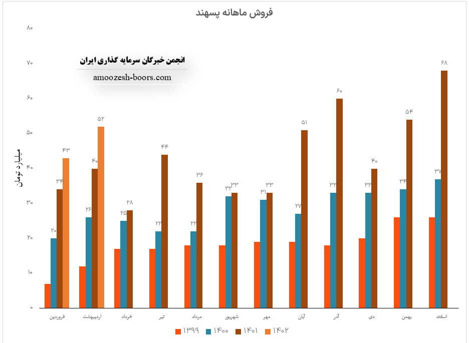 پسهند در اردیبهشت ماه توانست بالغ بر 295 من از محصولات خود را به فروش برساند که این میزان در مقایسه با فروش ماه گذشته حدود 9% رشد پیدا کرده است.