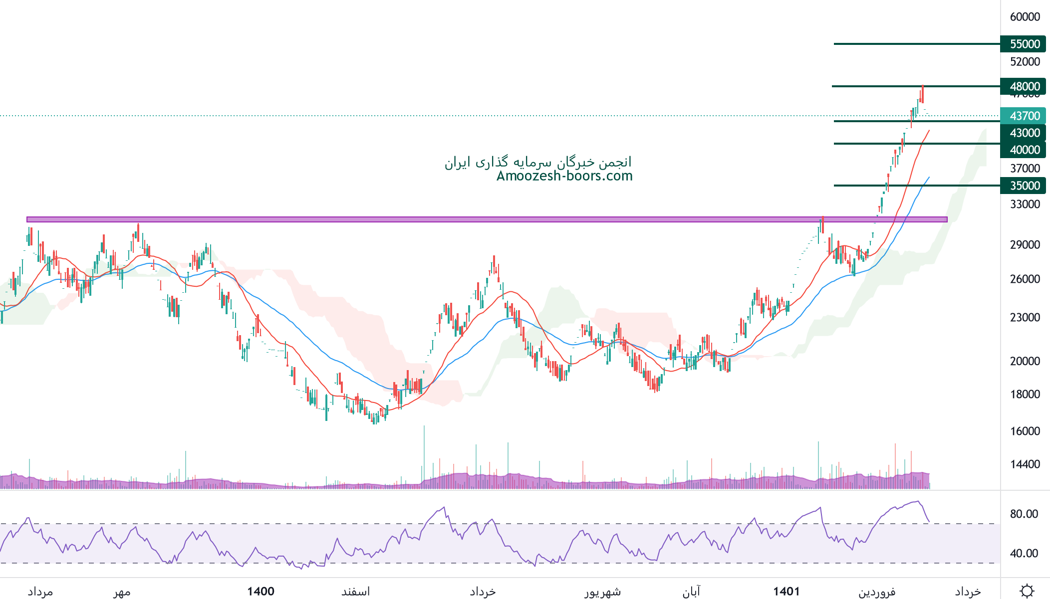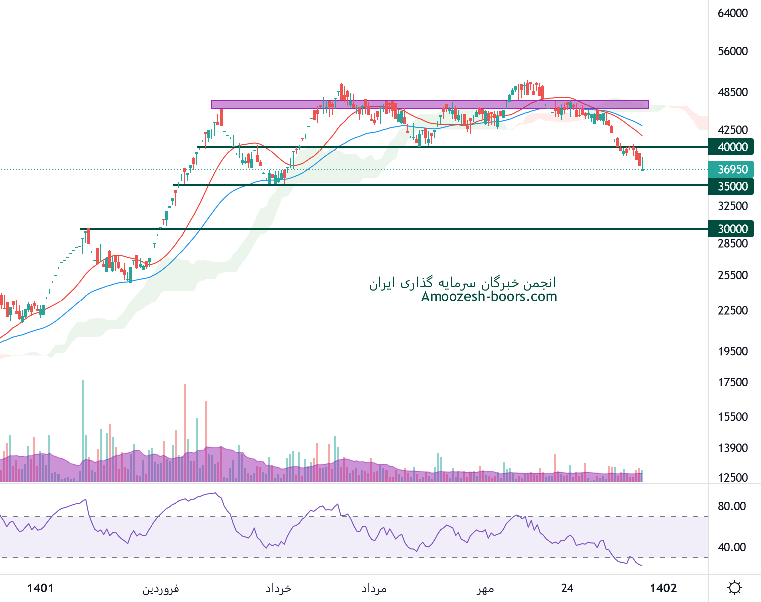 تحلیل تکنیکال سهم پلوله نشان میدهد که قیمت در محدوده مقاومتی 40000 ریال و حمایتی 35000 ریال در حال نوسان میباشد، در صورت شکست هر یک از سطوح، مقاومت بعدی سهم پلوله محدوده 50000 ریال و در صورت ایجاد فشار فروش حمایت بعدی پلوله 30000 ریال در نظر گرفته میشوند.