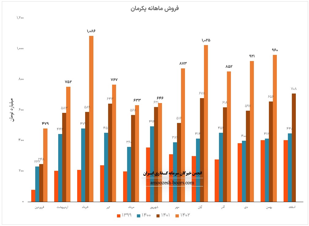 فروش پکرمان در این ماه افزایش 6% در مقایسه با ماه گذشته داشته است، همچنین در مقایسه به مدت مشابه 44% و نسبت به متوسط ماهانه 24% افزایش داشته است.