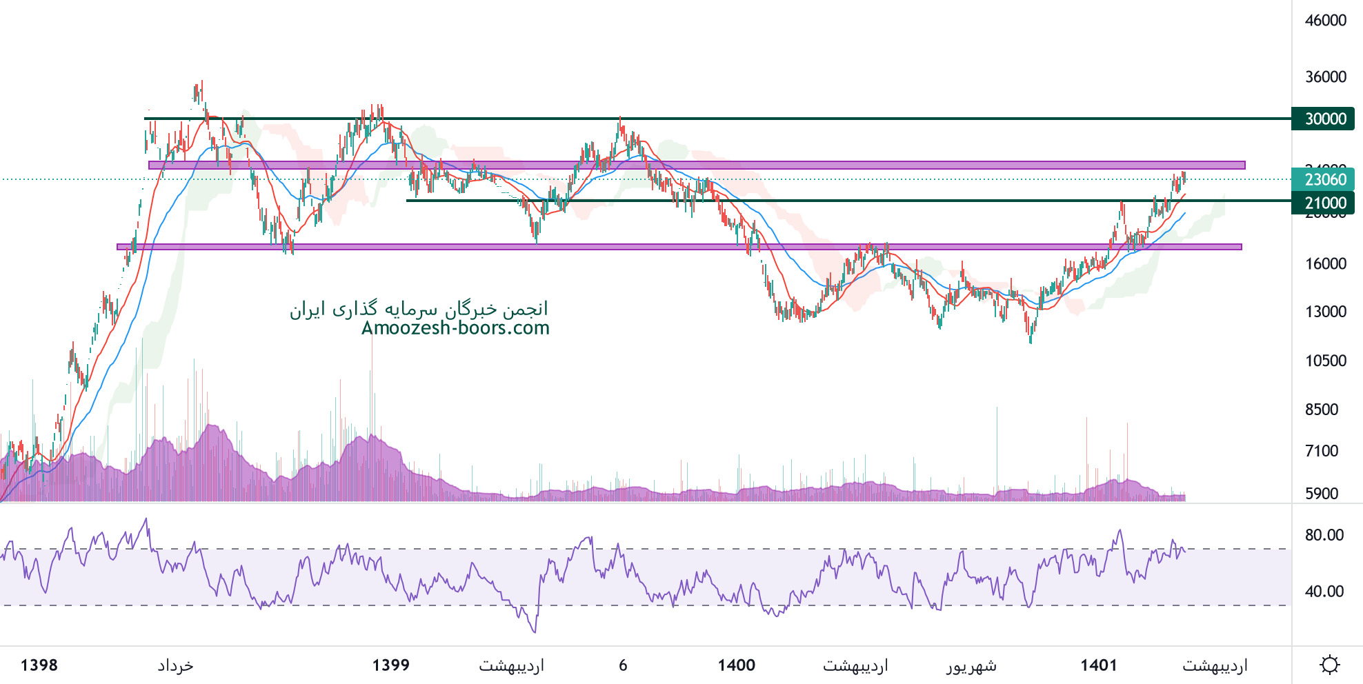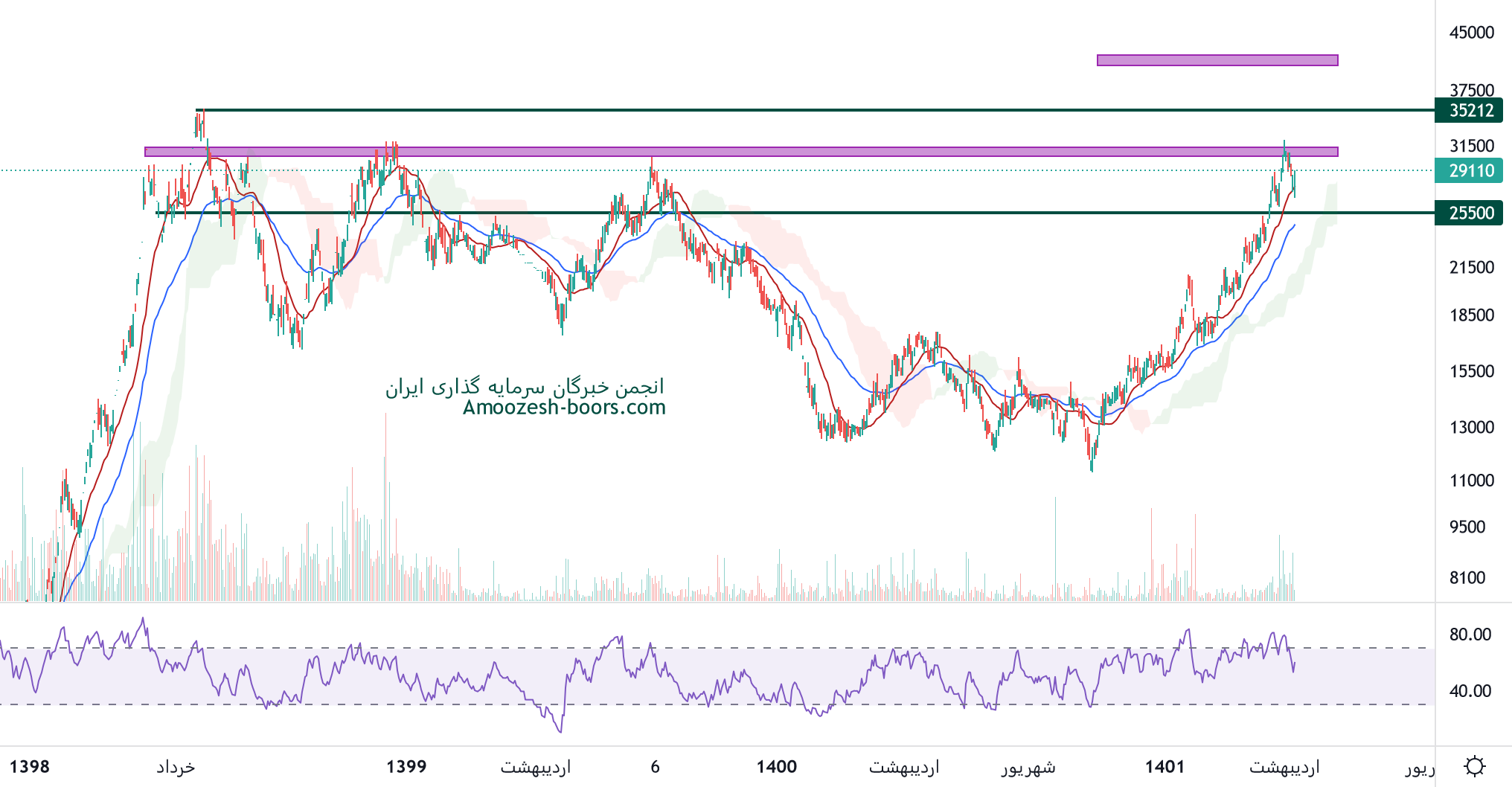 نماد پکرمان درگیر محدوده مقاومتی مستحکم 30000 ریال شده، در صورت افزایش فشار تقاضا و عبور قیمت سهم پکرمان از این محدوده، محدوده های مقاومتی بعدی 35000 و 40000 ریال ارزیابی میگردند، همچنین اولین حمایت سهم 25500 ریال در نظر گرفته خواهد شد.
