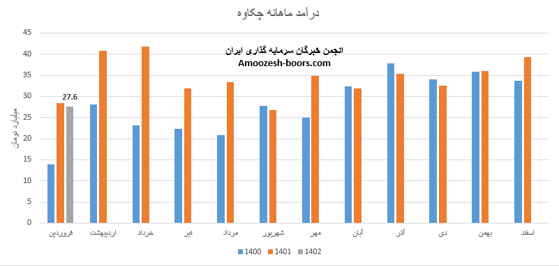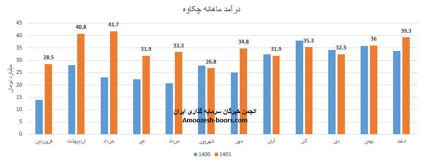 نماد چکاوه با گزارش درآمد فروش 39.3 میلیارد تومان عملکرد مطلوبی را در اسفند ماه بر جای گذاشت، 17% از این درآمد از طریق فروش صادراتی و مابقی از طریق فروش داخلی تامین شده است، به طوری که درآمد سهم چکاوه در آخرین ماه از سال مالی تغییرات زیر را تجربه نمود: