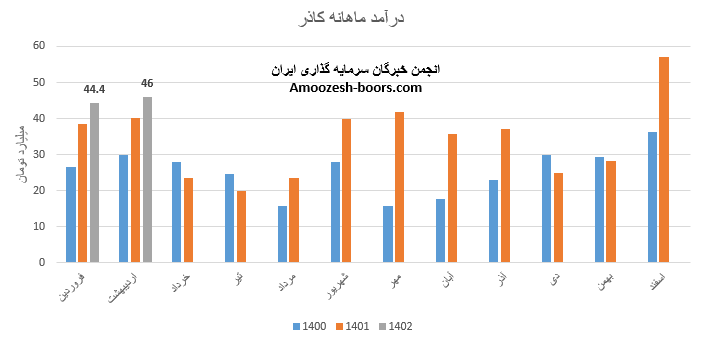 فروش نماد کاذر در عملکرد ماهانه اردیبهشت ماه سال 1401 برابر با 46 میلیارد تومان بوده، که در مقایسه با ماه گذشته و متوسط ماهانه به ترتیب از افزایش 4 و 15 درصدی همراه بوده است، محصول پر فروش و اصلی فرآورده های نسوز آذر محصولات شکل دار گزارش شده که در مقایسه با ماه گذشته از افزایش نرخ 26 درصدی برخوردار بوده است، همچنین محصولات بی شکل رشد 29 درصدی نرخ فروش را تجربه نموده است، تحلیل بنیادی کاذر نشان میدهد که طی عملکرد دو ماهه از سال مالی 15% بهبود عملکرد داشته و 22% از درآمد سال گذشته تحقق یافته است.