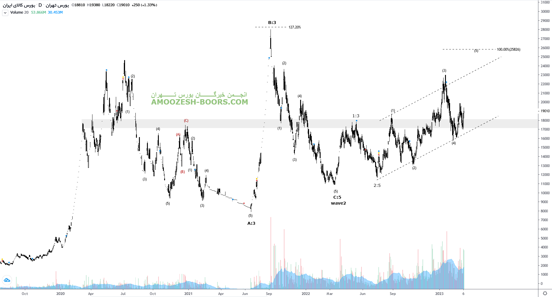 نماد کالا بعد از برخورد به سقف کانال صعودی اصلاح خود را شروع کرده و در حال حاضر در محدوده حمایتی 23000 ریال میباشد، هنوز کندل تثبیت در این محدوده به ثبت نرسیده، در صورت تثبیت قیمت سهم کالا در این محدوده حرکت این سهم مجددا تا سقف کانال در محدوده 31000 ریال و بعد از آن 40000 ریال محتمل خواهد بود، همچنین در صورتی که محدوده حمایتی ذکر شده از دست برود، اصلاح قیمت تا میدلاین کانال در محدوده 20000 ریال و بعد از آن 16500 ریال دور از ذهن نخواهد بود.