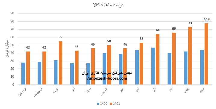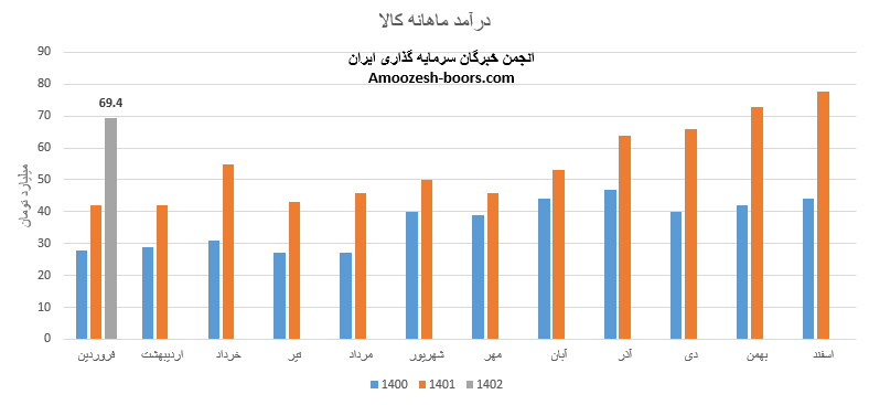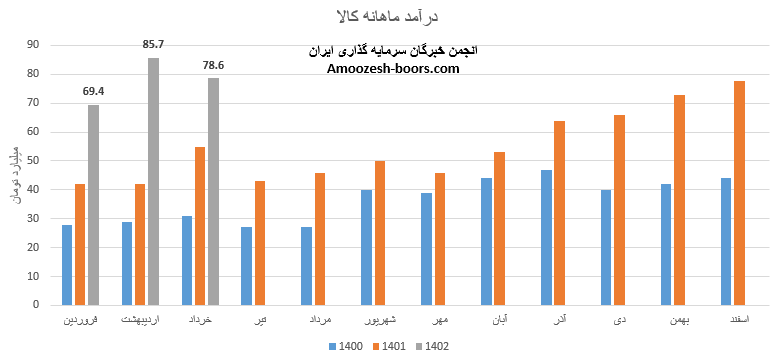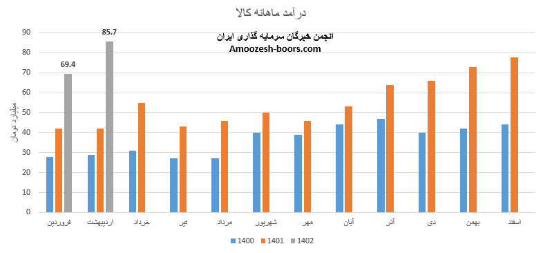 تداوم سود سازی در نماد کالا ادامه داشته و در آخرین ماه از سال مالی با ثبت رکورد جدید به درآمد 77.8 میلیارد تومان رسیده است، این رقم نسبت به ماه قبلی 7% و نسبت به متوسط ماهانه 48% و نسبت به مدت مشابه 77% رشد داشته است، مجموع درآمد 12 ماهه بورس کالای ایران 50% رشد داشته است، بیشترین بخش از درآمد بورس کالای ایران در اسفند ماه از طریق کارمزد معاملات تامین گردیده، که این محل نسبت به ماه گذشته رشد 7 درصدی را تجربه نموده است.