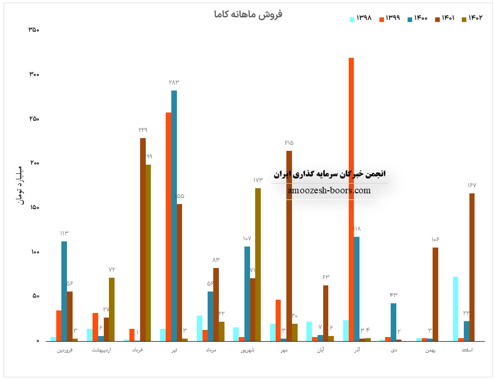 پیش بینی میگردد سهم کاما تا انتهای سال 1402 به ازای هر سهم 50 تومان سود بسازد.