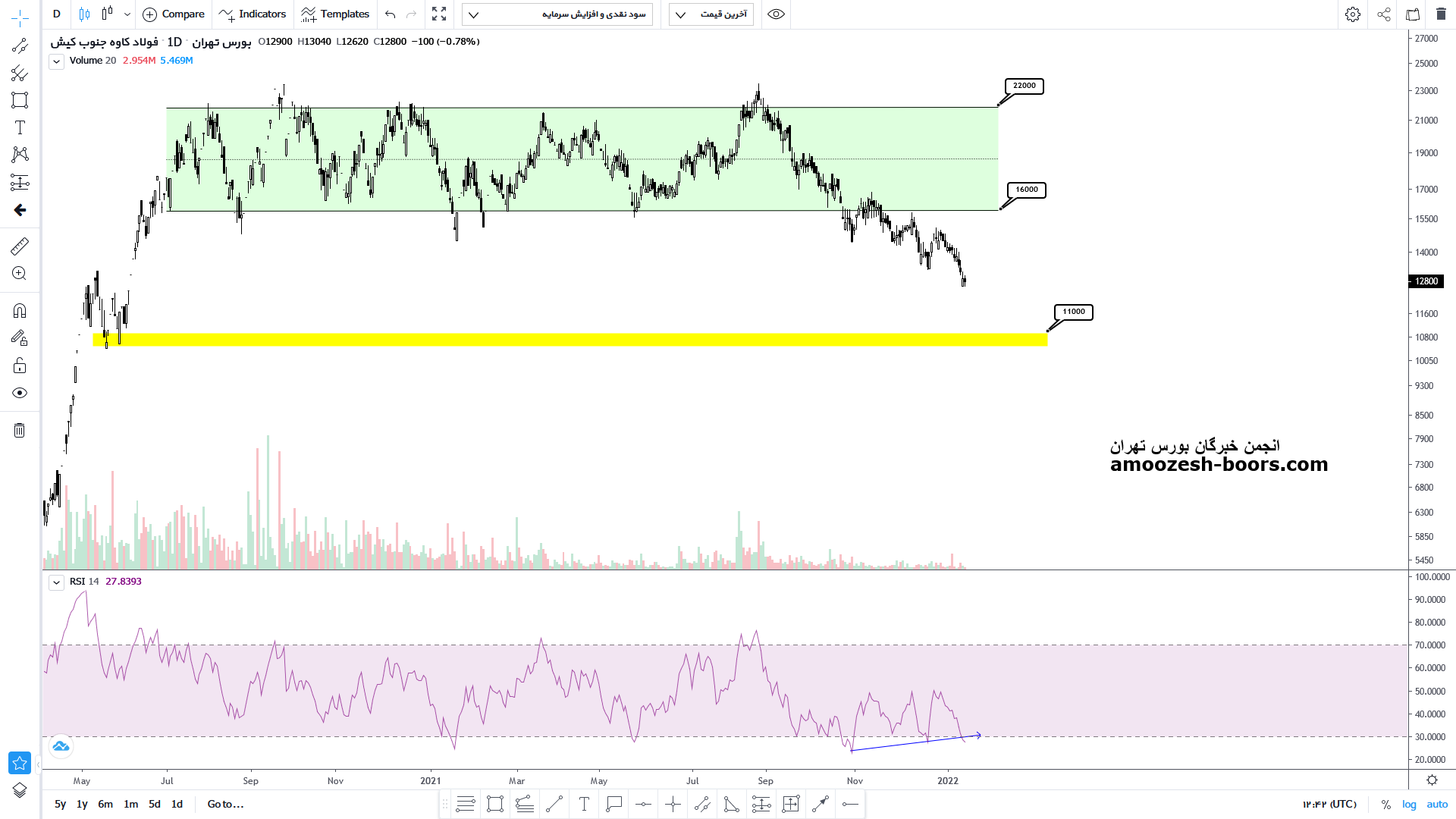 درصورت حمایت از محدوده 1100 تومان میتواند تا قیمت 1600 مجددا رشدی را تجربه کند