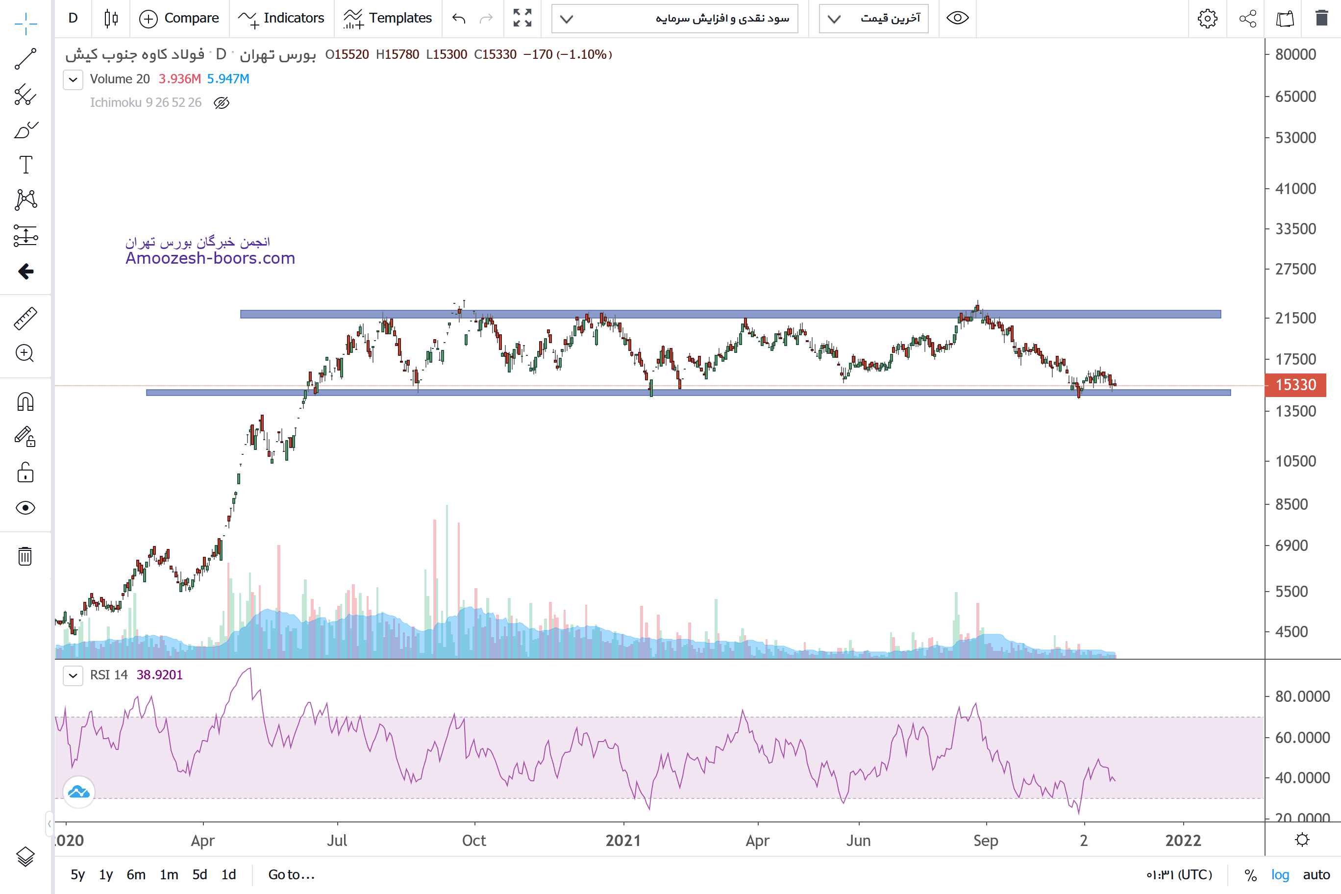سهم پس از شکست کانال نزولی و پولبک به ان در حال حاضر درگیر مقاومت پر تراکم 16600 شده در ص.رت ایجاد فشار فروش سهم حمایت 14500 را داشته که بهترین منطقه جهت ورود و سرمایه گذاری درسقف و کف ساخته شده در یک سال و نیم اخیر میباشد همچنین در صورت شکست این سطح مقاومت بعدی 18700 میباشد .