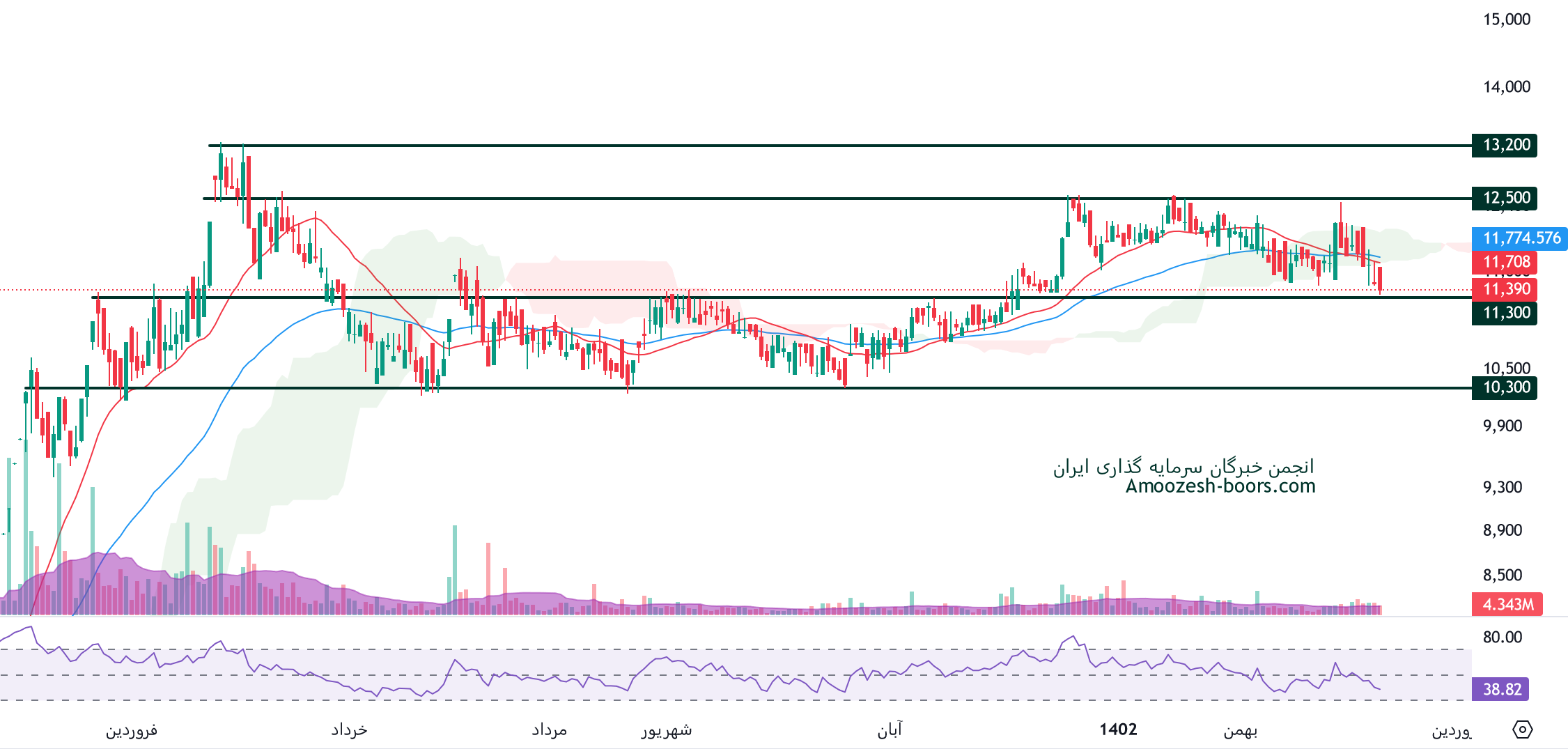 همانطور که در تحلیل تکنیکال کاوه میبینیم قیمت در محدوده حمایتی 11300 ریال و محدوده مقاومتی 12500 ریال در حال نوسان میباشد.