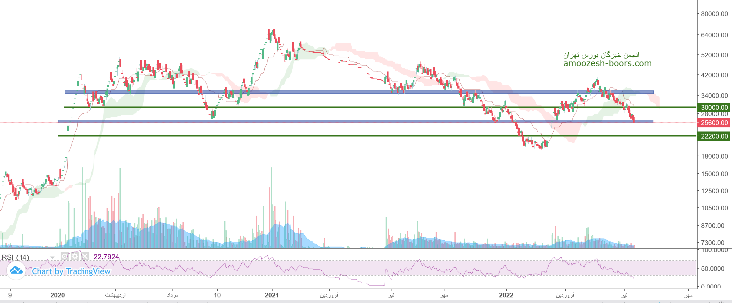 قیمت پس از حدود ۵۰ % رشد از کف کانال نزولی خود و شکست سقف کانال نزولی و همچنین مقاومت مهم محدوده ۲۷۰۰ تومان که یک مقاومت بسیار مهم و قوی برای قیمت محسوب می شد اکنون با برخورد به خط روند نزولی خود نشانه های تضعیف روند را مشاهده میکنیم در صورت اصلاح قیمت محدوده حمایتی ۲۷۰۰ تومان را پیش روی خود میبیند اما در صورت شکست این خط روند نزولی علی می تواند رشد خود را تا مقاومت محدوده ۳ هزار و ۷۰۰ تومان نیز ادامه دهد.