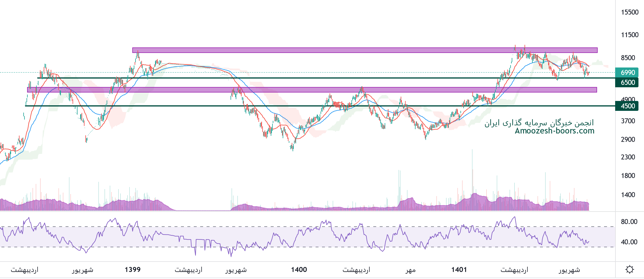 در بررسی نمودار تکنیکال کترام قیمت سهم سطح حمایتی 6500 ریال را دارا میباشد، در صورت بیس سازی قیمت در این منطقه، نماد کترام مستعد رشد تا محدوده 9000 ریال خواهد بود، همچنین در صورت از دست رفتن محدوده حمایتی ذکر شده، حمایت بعدی سهم کترام 5500 ریال در نظر گرفته خواهد شد.
