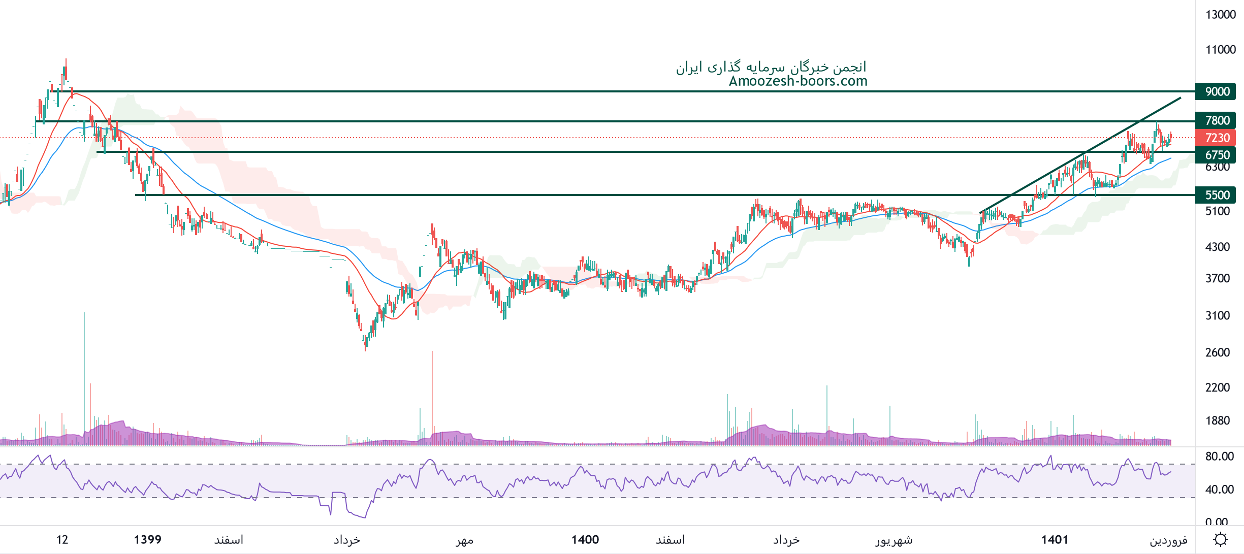 نماد کحافظ مابین محدوده حمایتی 6750 ریال و مقاومتی 7800 ریال قرار دارد، در صورت عبور از این مقاومت، حرکت سهم تا 9000 ریال محتمل خواهد بود، همچنین در صورت از دست رفتن محدوده حمایتی، حمایت بعدی 5500 ریال در نظر گرفته خواهد، به سهامداران این نماد توصیه میگردد مادامی که محدوده حمایتی 6750 ریال از دست نرفته است اقدام به فروش ننمایند.