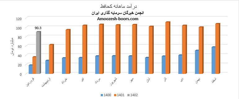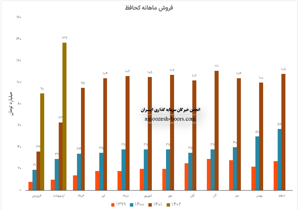 نماد کحافظ (شرکت تولیدی کاشی و سرامیک حافظ )در اردیبهشت ماه 1402 حدود مبلغ 137 میلیارد تومان درآمد داشته که این میزان در مقایسه با ماه گذشته 52% و همچنین در مقایسه با مدت مشابه سال گذشته 117% رشد پیدا کرده است.