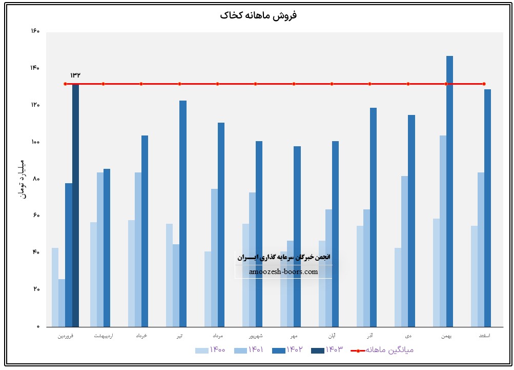 کخاک با ثبت فروش ۱۳۲ میلیارد تومانی در این ماه توانست حدود ۶ درصد از پیش بینی فروش سالانه خود را محقق سازد.