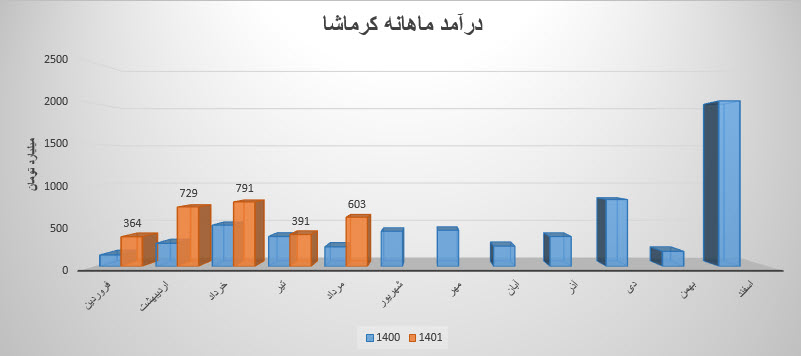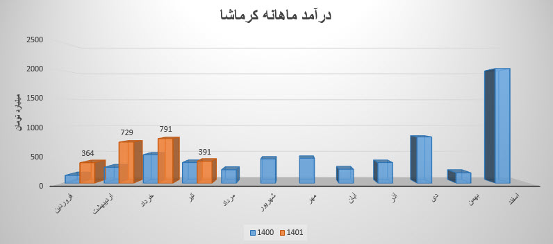 درآمد سهم کرماشا در این دوره نسبت به ماه قبل 54% افزایش و نسبت به میانگین ماه های قبل 6% افزایش داشته است.
