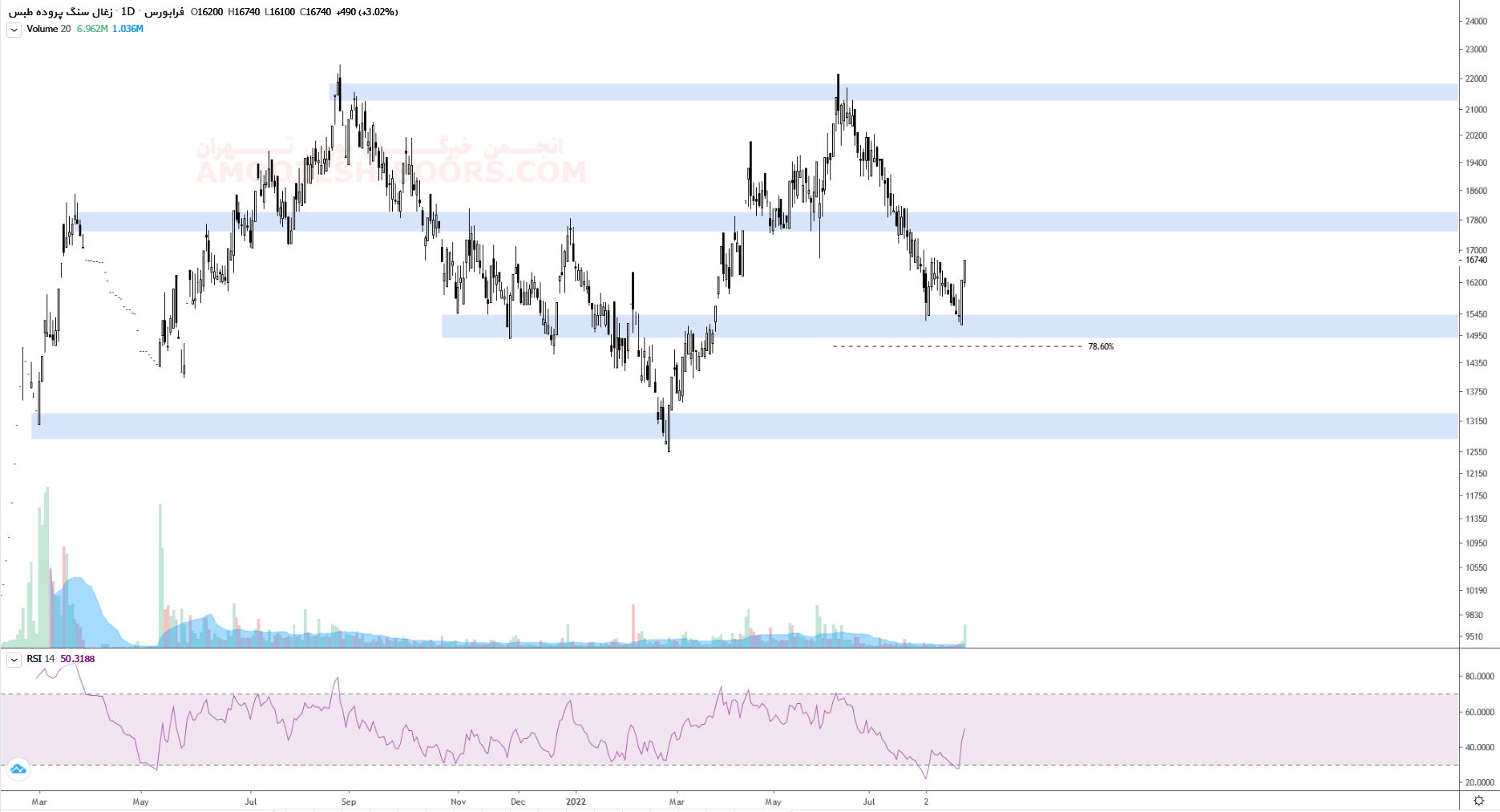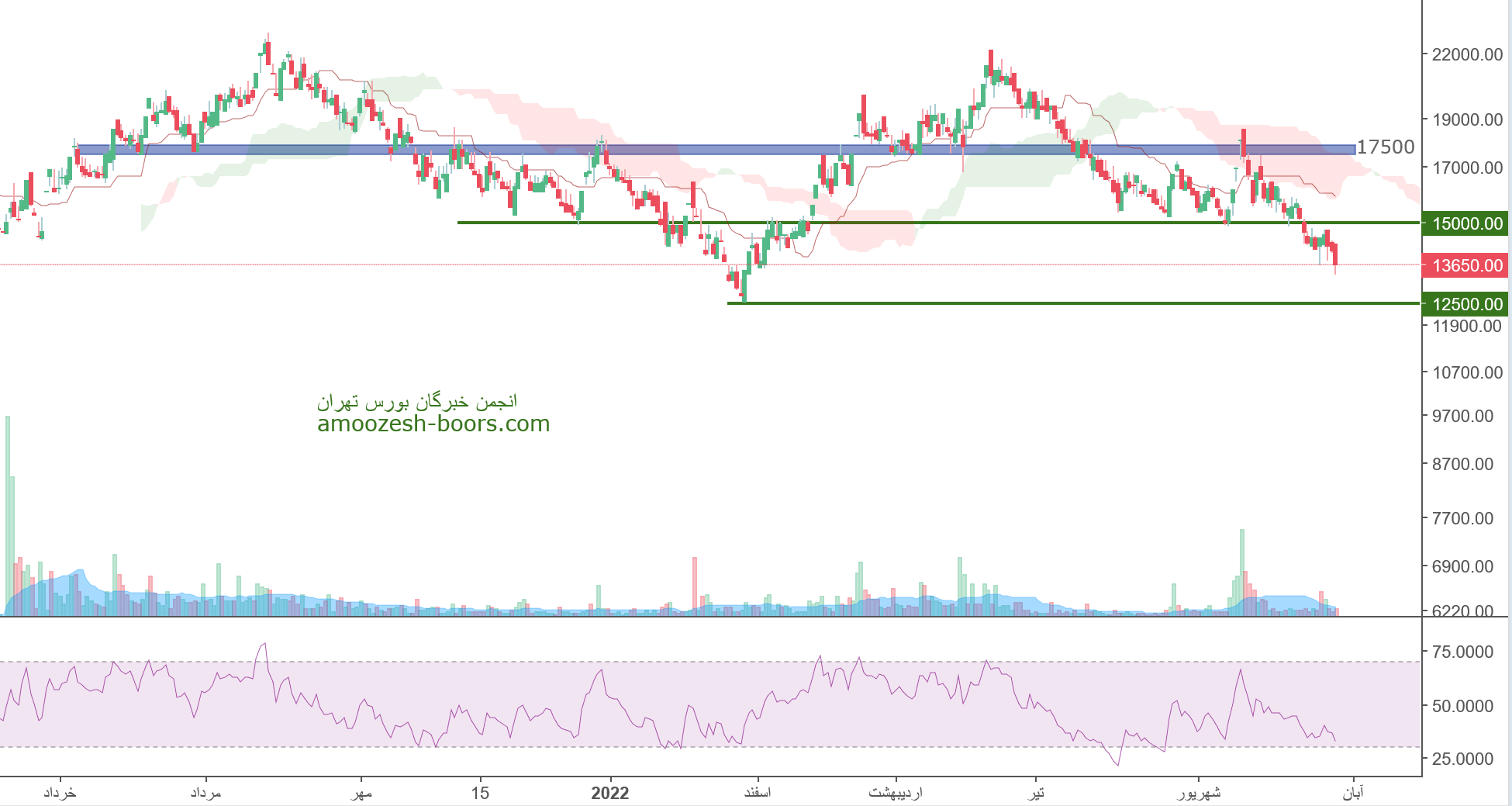 کزغال در ادامه اصلاح خود حمایت 13500 ریال را دارا میباشد، در صورت تثبیت قیمت در این محدوده، حرکت قیمت تا 15000 ریال محتمل میباشد، و در صورت از دست دادن این حمایت و ادامه دار شدن اصلاح، حمایت بعدی 12500 ریال خواهد بود.