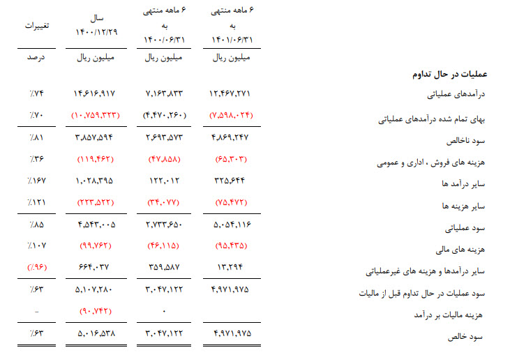 همچنین سود عملیاتی 85% رشد ،درآمدهای عملیاتی 74% رشد،هزینه های مالی 107% رشد داشته است. سایر تغییرات با اهمیت در جدول زیر قابل مشاهده میباشد .