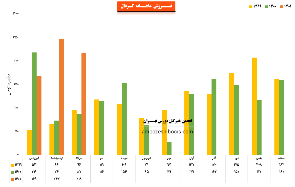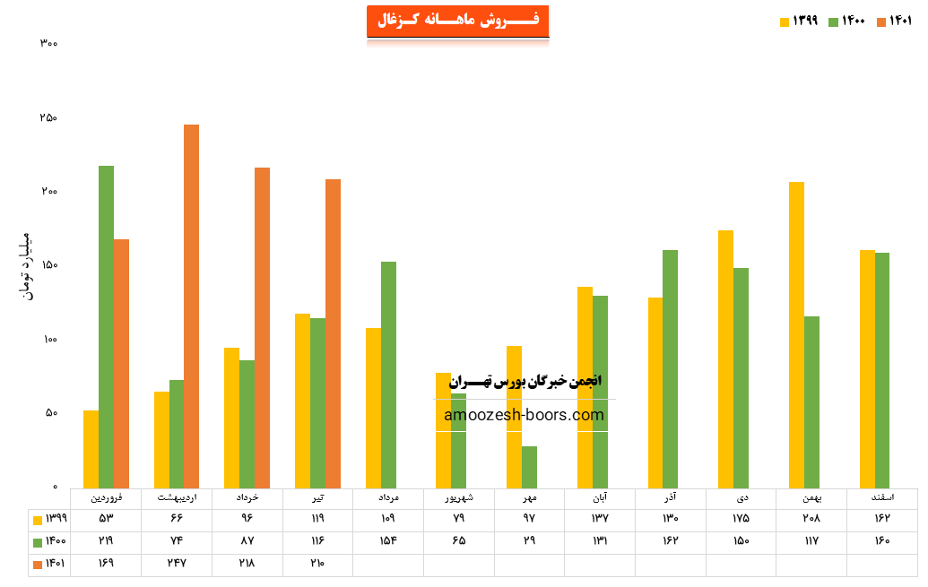 نماد کزغال در تیر ماه حدود بیش از 54300 تن از محصولات خود را به فروش رسانده که این میزان در مقایسه با حجم فروش ماه گذشته خود حدود 2% افزایش پیدا کرده است.