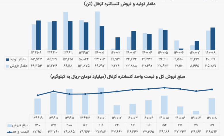 مقدار فروش کنسانتره شرکت در ماه آذر با رشد 38 درصدی نسبت به ماه آبان همراه شد. نرخ فروش کنسانتره زغال سنگ شرکت در این ماه برابر با 3.5 میلیون تومان در هر تن گزارش شده است که 2.5 درصد کمتر از ماه گذشته می باشد.