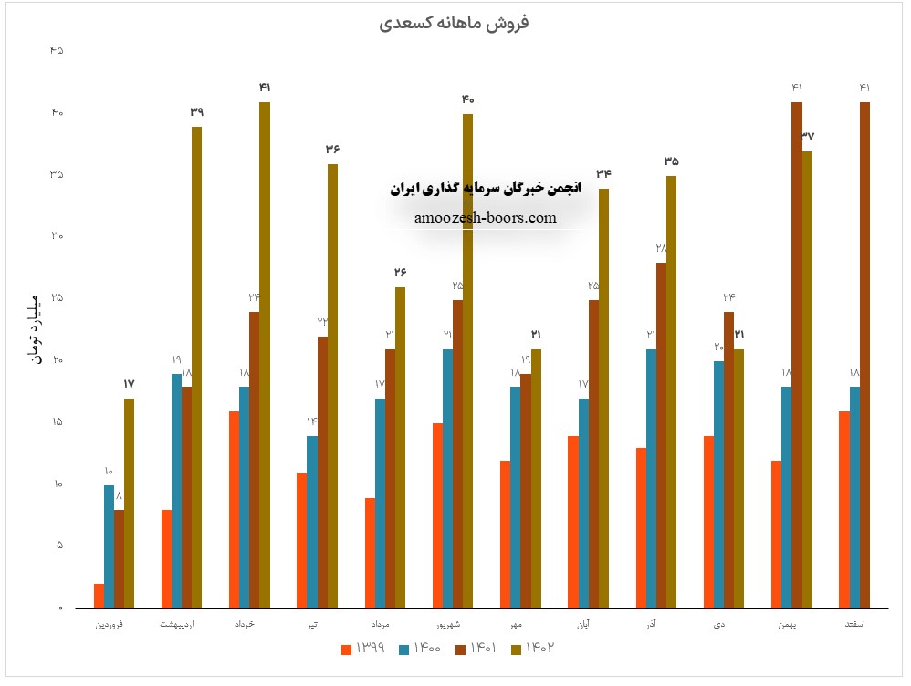 فروش کسعدی در این ماه افزایش 51% در مقایسه با ماه گذشته داشته است، همچنین در مقایسه به مدت مشابه 34% و نسبت به متوسط ماهانه 36% افزایش داشته است.