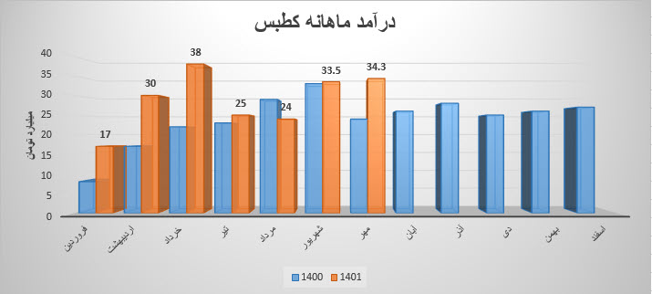 شرکت کطبس (زغال سنگ نگين طبس) در آذر ماه ۱۴۰1 حدود مبلغ 32 میلیارد تومان درآمد داشته که این میزان در مقایسه با ماه گذشته 9% کاهش و همچنین در مقایسه با مدت مشابه سال گذشته 14% افزایش درآمد پیدا کرده است.