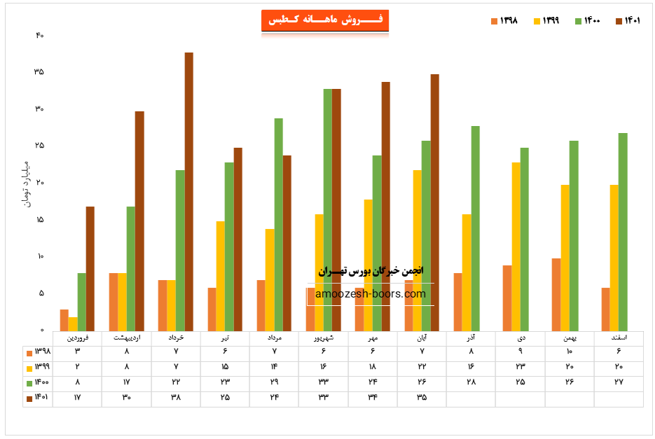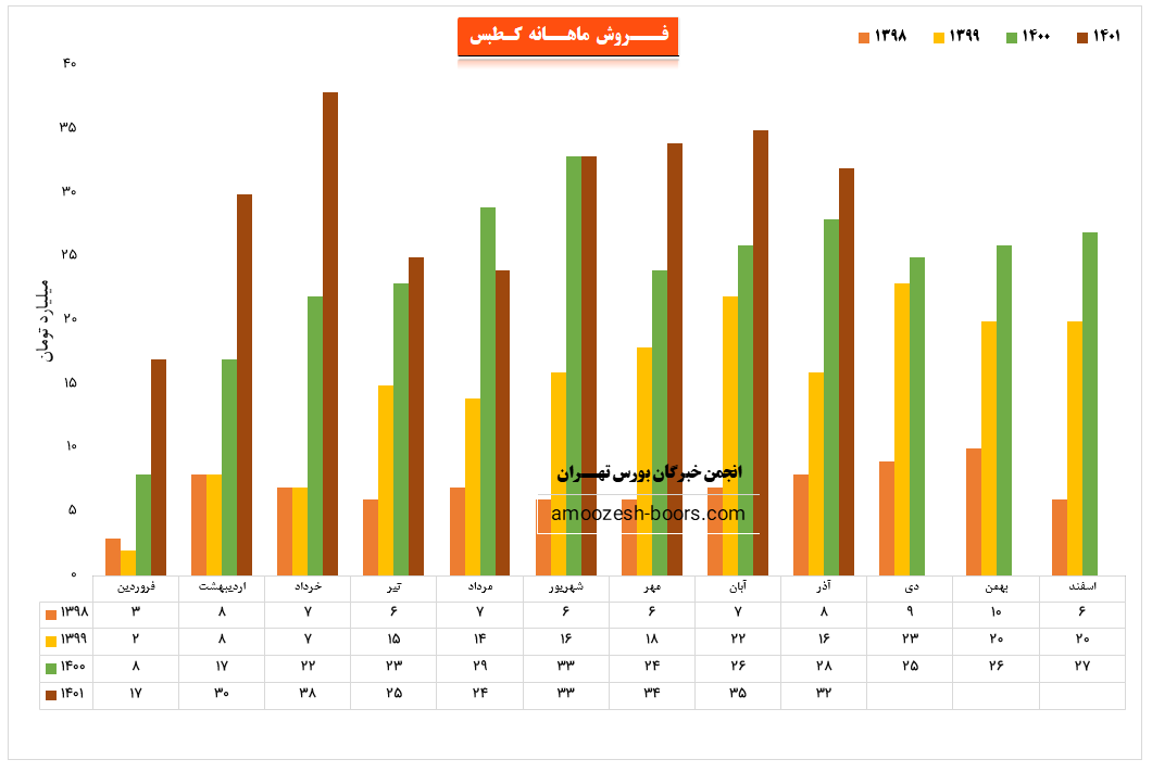 کطبس در آذر ماه حدود بیش از 23/700 تن از محصولات خود را به فروش رسانده که این میزان در مقایسه با حجم فروش ماه گذشته خود حدود 7 درصد کاهش پیدا کرده است