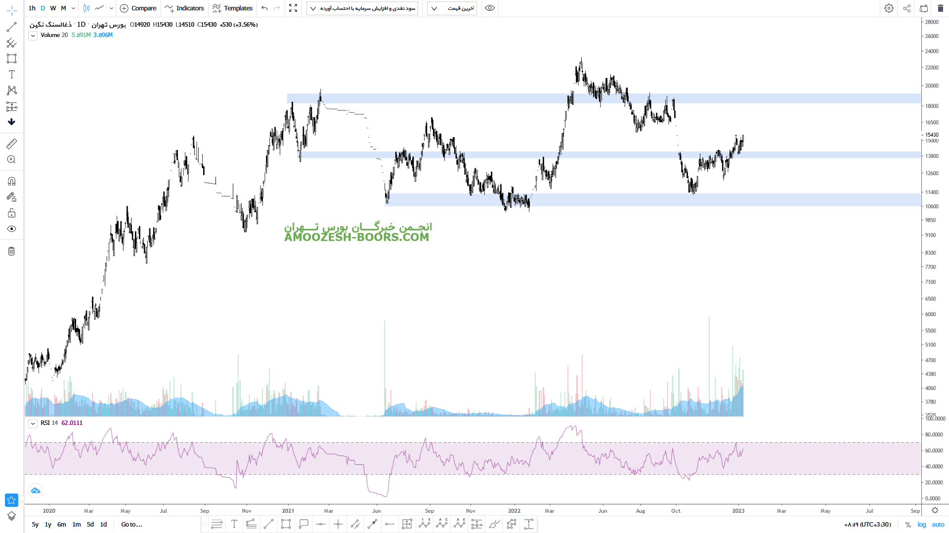 کطبس به حمایت 11000 ریال واکنش نشان داده، در صورت تثبیت در این ناحیه و حرکت سهم اولین مقاومت سهم 14000 ریال در نظر گرفته خواهد شد، همچنین در صورت از دست رفتن این حمایت و ادامه دار شدن اصلاح، حمایت بعدی 10000 ریال در نظر گرفته خواهد شد.