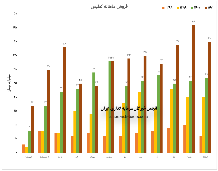مجموع درآمد سهم کطبس طی عملکرد 10 ماهه نسبت به مدت مشابه 30% افزایش داشته و با توجه پیش بینی فروش 371 میلیارد تومانی حدود 83% آن محقق شده است.