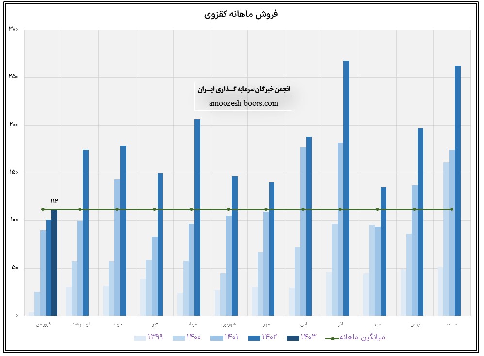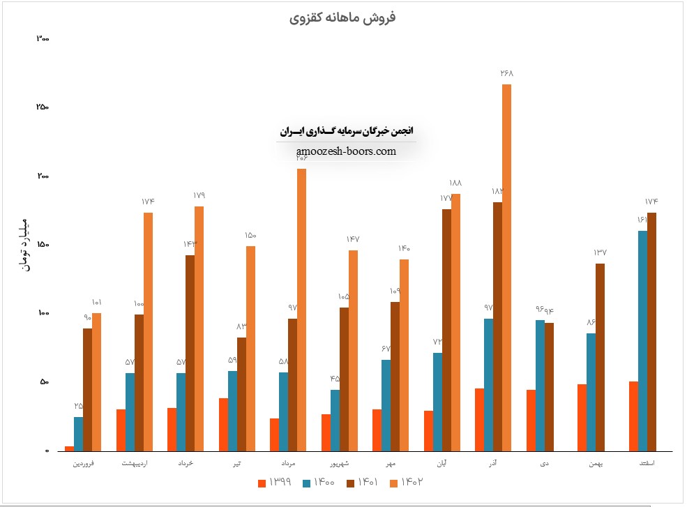 شرکت شیشه قزوین ( کقزوی ) در بهمن ماه 1402 فروش 135 میلیارد تومانی را به دست آورده که کاهش 50 درصدی در مقایسه با ماه گذشته و همچنین کاهش 22 درصدی نسبت به متوسط ماهانه داشته است،