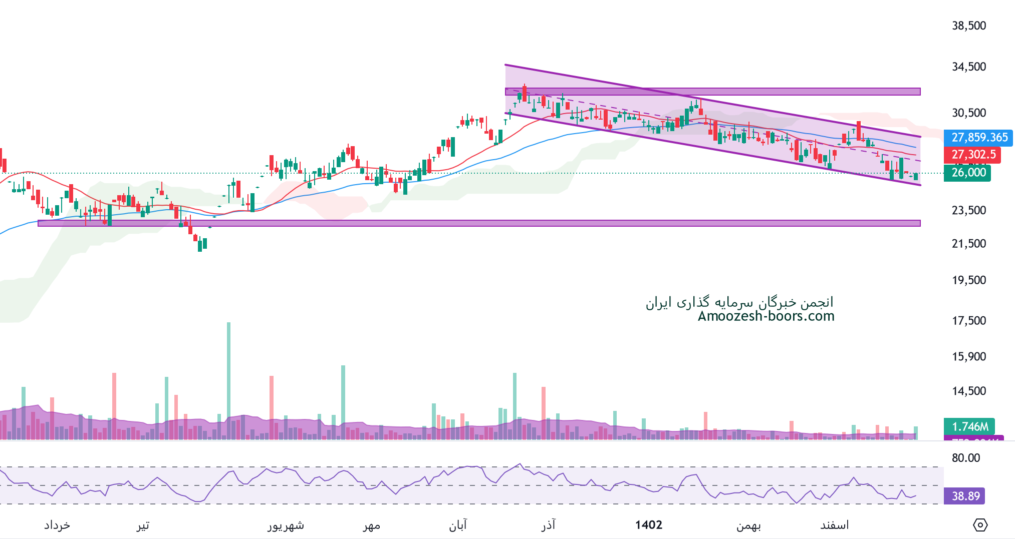 در صورت متعادل شدن جو بازار قیمت پتانسیل برگشت داشته که در این صورت مقاومت های کقزوی به ترتیب 28500 و 32500 ریال در نظر گرفته خواهند شد.