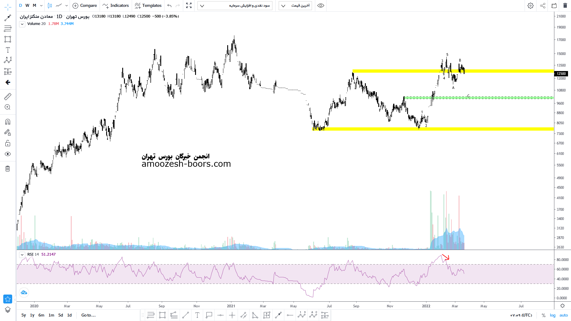 قیمت پس از درگیری های فراوان با محدوده مقاومتی ۱۳۰۰ تومان و با توجه به بروز واکنش منفی نسبت به این محدوده در صورت نوزاد بیشتر محدوده حمایتی هزار تومان یک محدوده خیلی مهم و قوی محسوب می شود را پیش روی خود دارد اما در صورت شکست این محدوده میتواند مجدداً کف معتبر محدوده ۷۵۰ تومان را تست کند. در صورت تثبیت بالای محدوده مقاومتی ۱۳۰۰ تومان نیز میتواند رشد خود را تا محدوده مقاومتی سقف تاریخی یعنی محدوده ۱۶۰۰ تومان ادامه دهد.