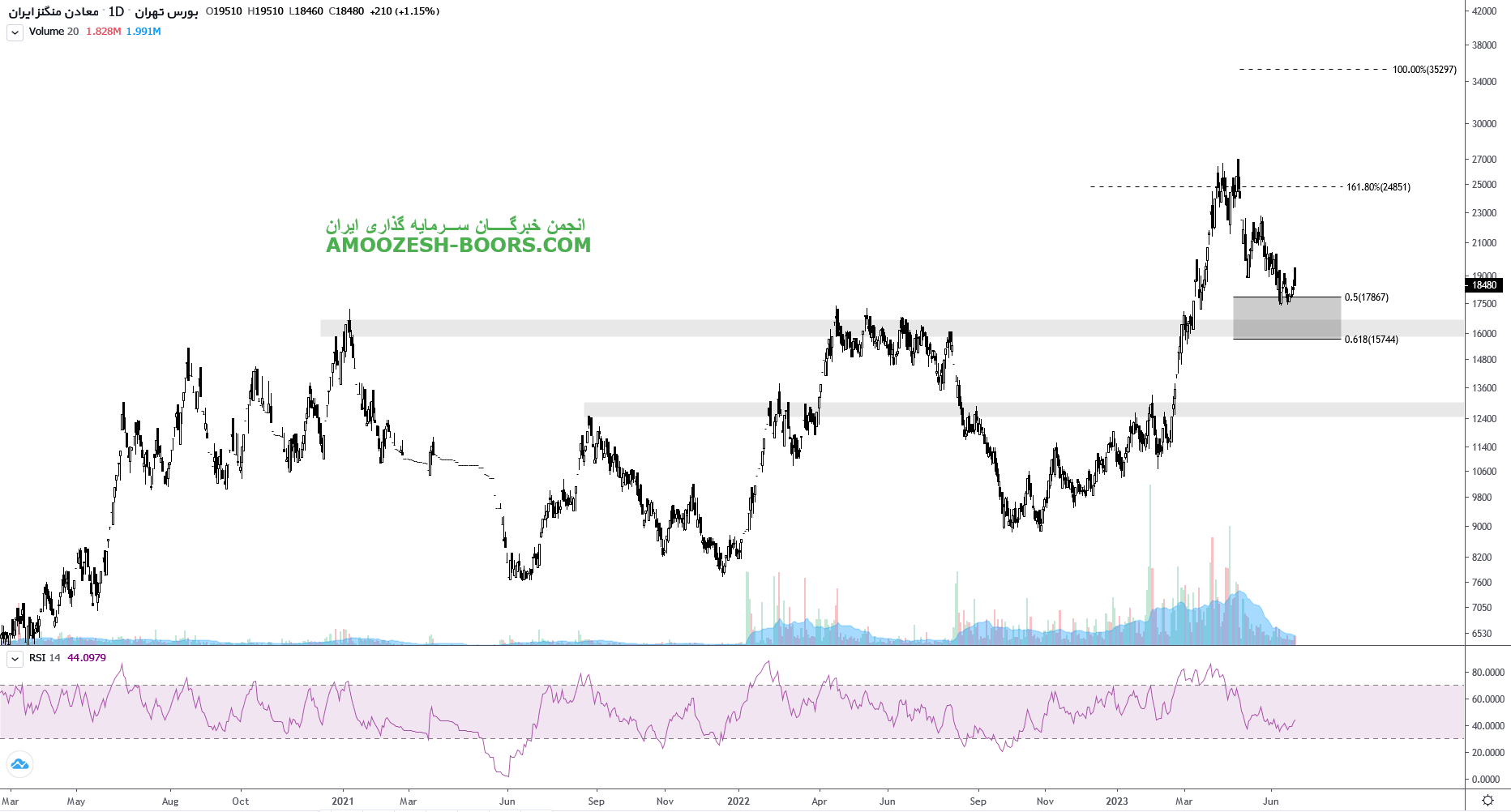 قیمت سهم کمنگنز بر روی حمایت ناحیه ۱۸۰۰ تومان قرار گرفته است که در صورت چرخش از این ناحیه اولین مقاومت سهم کمنگنز ناحیه ۲۵۰۰ تومان و در صورت شکست مقاومت بعدی سهم کمنگنز ناحیه 3500 تومان در نظر گرفته خواهد شد همچنین در صورت برگشت مجدد و تمایل قیمت اصلاح بیشتر حمایت بعدی سهم کمنگنز ناحیه ۱۶۰۰ تومان در نظر گرفته خواهد شد.