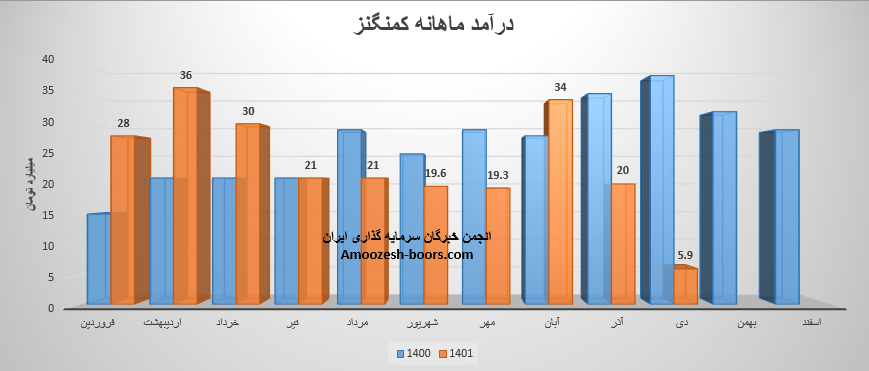شرکت کمنگنز (معادن منگنز ایران) در آبان ماه ۱۴۰1 حدود مبلغ 34 میلیارد تومان درآمد داشته که این میزان در مقایسه با ماه گذشته 79 درصد و همچنین در مقایسه با مدت مشابه سال گذشته 21 درصد افزایش پیدا کرده است.
