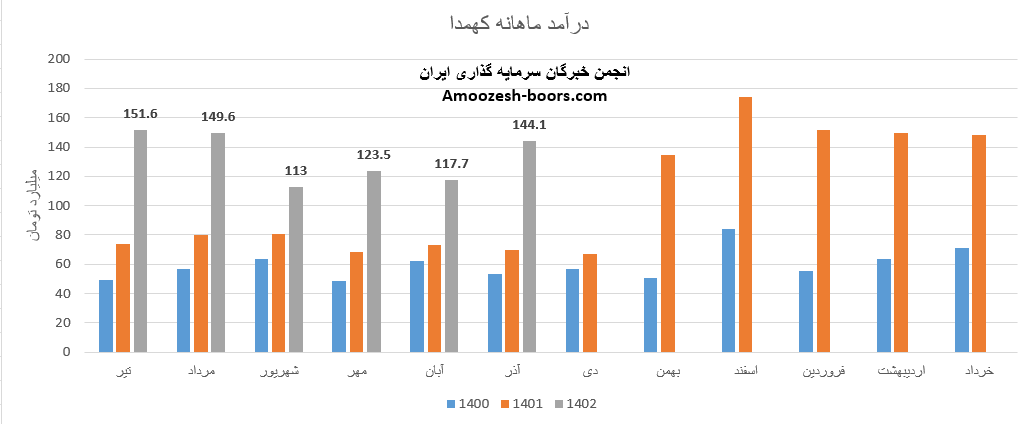 درآمد آبان ماه سال 1402 سهم کهمدا 117.7 میلیارد تومان بوده است که در مقایسه با ماه گذشته 5% افت داشته است.
