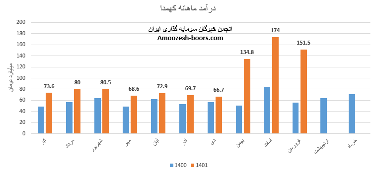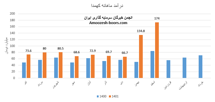 سال مالی نماد کهمدا منتهی به خرداد ماه میباشد و این شرکت در فروردین ماه درامد 151.5 میلیارد تومانی را شناسایی نموده است، 27% از این درآمد از طریق فروش صادراتی و مابقی از طریق فروش اخلی تامین گردیده است، درآمد کهمدا در دهمین ماه از سال مالی نسبت به ماه قبل 13% کاهش داشته اما در مقایسه با متوسط ماهانه و مدت مشابه سال قبل به ترتیب با افزایش 66 و 173 درصدی همراه بوده است، پر فروش ترین محصول شرکت شیشه همدان مربوط به فروش انواع ظروف شیشه ای بطری و جار میباشد که نرخ فروش آن نسبت به ماه قبل تغییرمحسوسی نداشته، میزان تولید نیز 15% افزایش داشته و صرفا در مقدار فروش عملکرد ضعیفی را به ثبت رسانده و افت 7 درصدی نسبت به ماه قبلی را تجربه نموده، مجموعا عملکرد 10 ماهه نماد کهمدا 36% بهتر از کل درامد سال قبل میباشد.