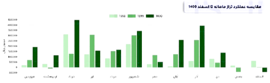 تراز شرکت در این دوره نسبت به ماه قبل 64% کاهش و نسبت به میانگین ماه های قبل 41% کاهش داشته است.