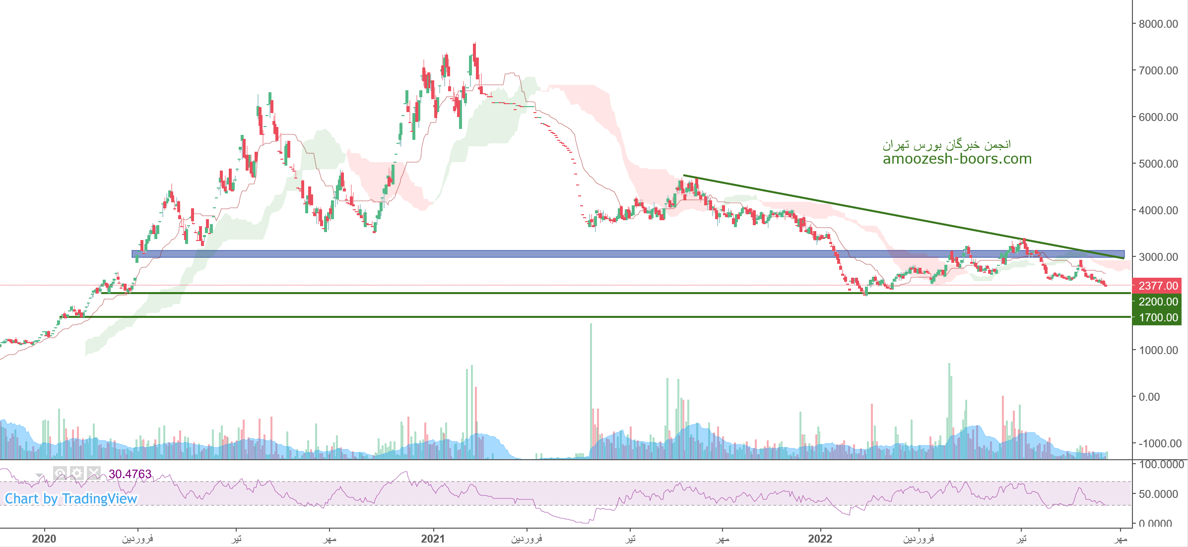 قیمت سهم کویر در حال حاضر حمایت 2200 ریال را دارا میباشد، در صورت تثبیت قیمت، حرکت سهم تا 3000 ریال دور از ذهن نخواهد بود، همچنین در صورت از دست رفتن این حمایت، حمایت بعدی سهم کویر 1700 ریال در نظر گرفته خواهد شد که در این صورت حد ضرر فعال میگردد.