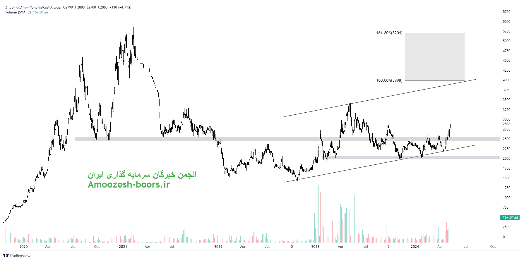 مقاومت نماد کویر از ناحیه پر تراکم 2500 ریال تشکیل شده است و با توجه به شرایط بازار شکست مقاومت و رسیدن به تارگت 3000 ریال محتمل میباشد.
