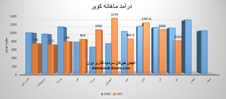 نماد کویر (شرکت توليدي فولاد سپيد فراب کوير) در آذر ماه سال ۱۴۰1 حدود مبلغ 1095 میلیارد تومان درآمد داشته که این میزان در مقایسه با ماه گذشته 14% و همچنین در مقایسه با مدت مشابه سال گذشته 5% کاهش پیدا کرده است.
